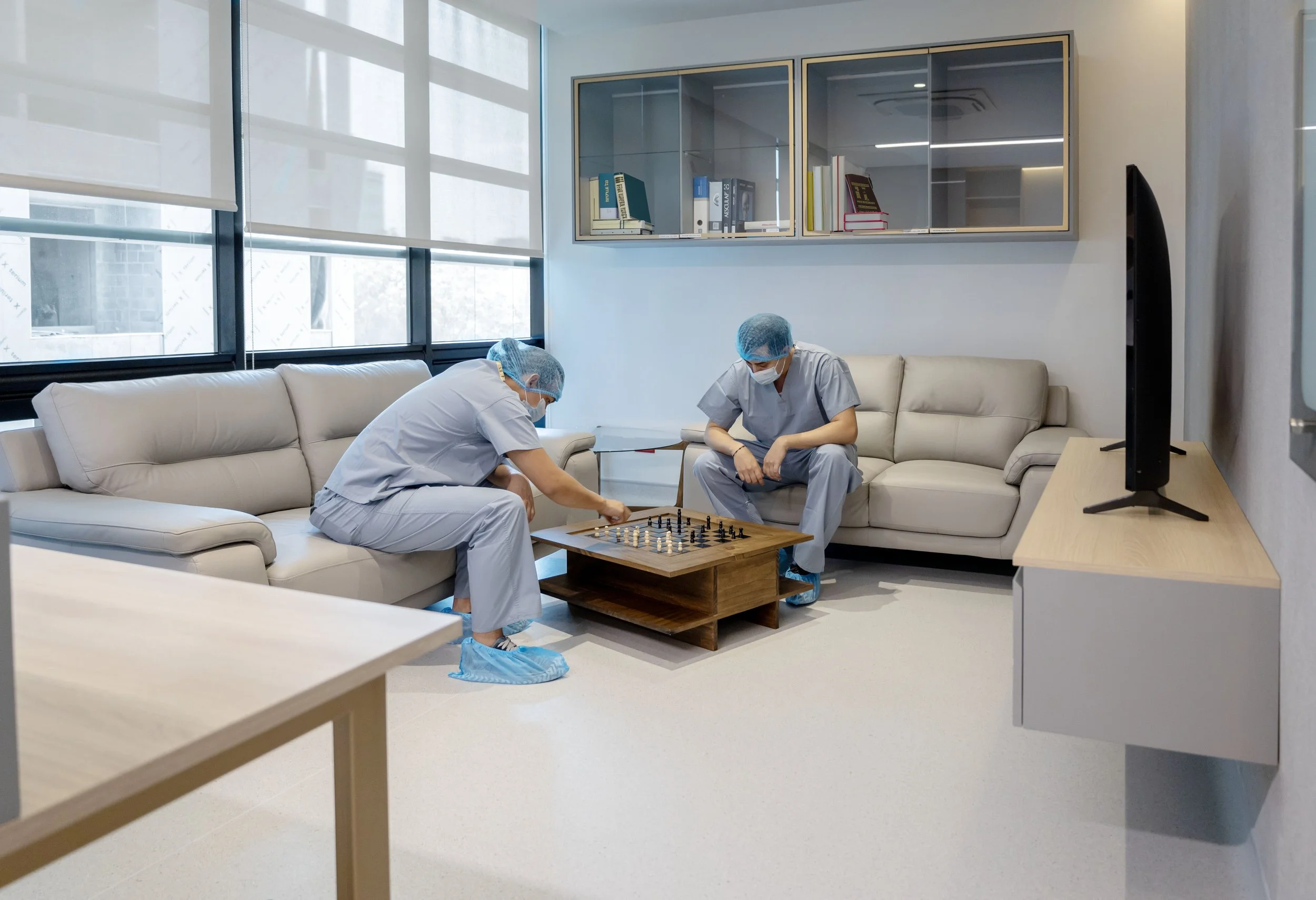 Nuestras áreas para médicos han sido diseñadas para brindarte comodidad, bienestar y un ambiente de excelencia. Contamos con una moderna sala de médicos y comedor equipada con espacios de descanso y entretenimiento, para relajarse antes y después de sus procedimientos.